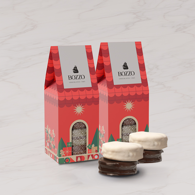 Un clásico de Bozzo de 4 Alfajores Surtidos, ahora en una edición festiva que celebra la elegancia del sabor. Esta presentación especial incluye dos estuches, cada uno con 4 alfajores inspirados en un acogedor refugio navideño. En su interior, alfajores bañados en chocolate blanco y chocolate bitter que realzan la tradición y el encanto de la temporada.